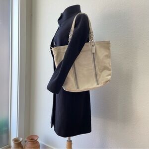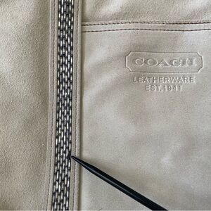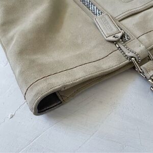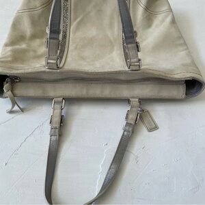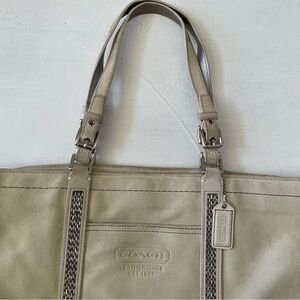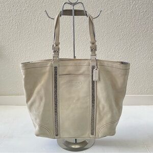 COACH LG FINEST IVORY SUEDE LEATHER BEADED GALLERY TOTE BAG PURSE