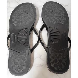 COACH Landon Black Jelly Flip Flops with Gold Bow - Size 10