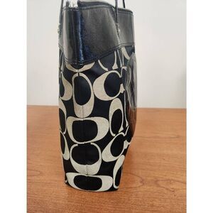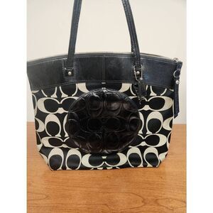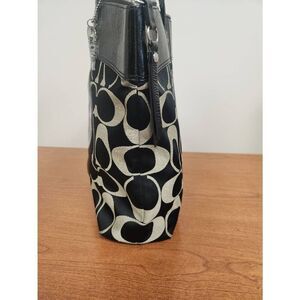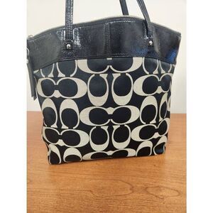 COACH Laura Signature Large Tote Black Metallic Medallion Canvas Leather 18335