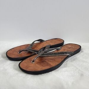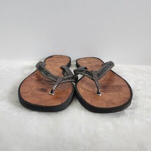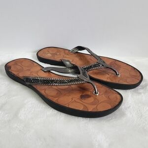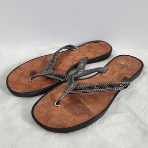 COACH Laurel Leather Silver Gray Bugle Beaded Flip Flop Sandals Size 8