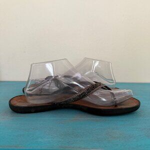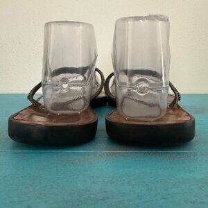 COACH Laurel Leather Silver Gray Bugle Beaded Flip Flop Sandals Sz 9.5