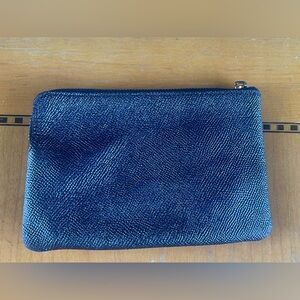 COACH Leather Corner Zip Wristlet Pouch Metallic Dark Teal/Silver