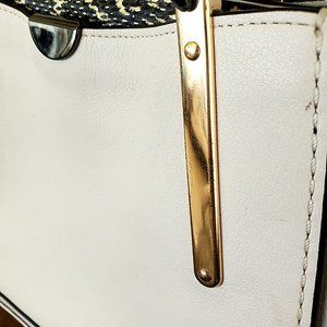 New with tags but was incorrectly tagged and has a few minor imperfections from transit. Minor rubs on bottom corners, and several very small spots in the leather which are shown in the last few photos. Minor scratches on hardware.