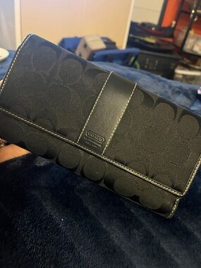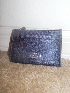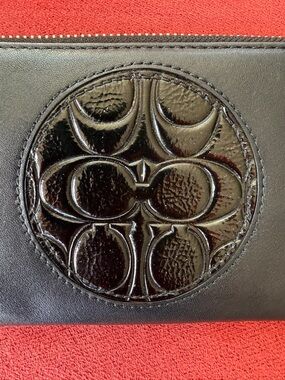 Details: COACH smooth black leather ID & card holder. Clear ID slot on one side, and 2 card slots on the other. Can be used on it's own or inserted into a standard Bo-fold wallet.