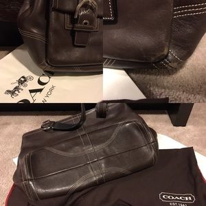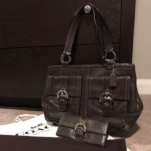 This tote is a genuine Coach, leather handbag. Two front pockets, zippered main purse, interior- 1 zip pocket and multiple slide in pockets. I'm also selling the matching wallet in my closet--- utilize the bundle option for both :)