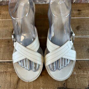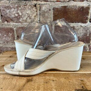 COACH Leather White Strap Vamp Wrapped Wedge Heels Slip on Size 9.5