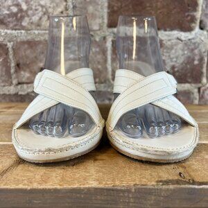 COACH Leather White Strap Vamp Wrapped Wedge Heels Slip on Womens Size 9.5 Made in Italy