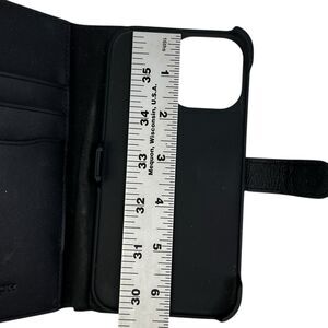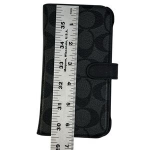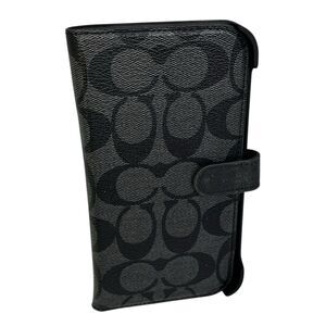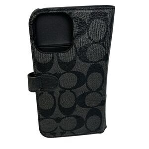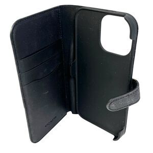 COACH Leather iPhone 15 Pro Folio Smartphone Slim Wrap Case Black Gray