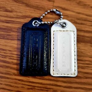 Item Description: Double Hang Tags in Leather and Silver Plate, various color combinations from Coach