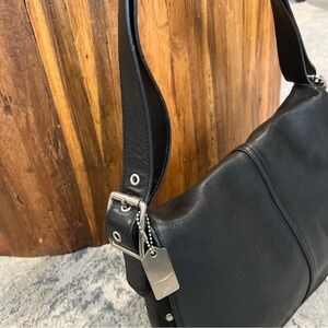 COACH Legacy CROSSBODY LEATHER BAG Black Flap Purse 7454 Adjustable Strap
