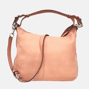 Great Condition Pre-Owned Clean No rips, tears or staining Some very small natural wear marks(shown) Thick leather Medium Peachy Color, not orange or pink Had some Fading, darker bottom, just from love Measurements 13 Wide 11.5 Tall Converts from shoulder to crossbody 📬Same Day and Next Day Ship Priority USPS Note: All Pre-Owned items are not perfect,are inspected for flaws, and are noted. ☆Always Non smoking ☆Items are cleaned and sanitized for your enjoyment. ☆All Leather items are conditioned with quality products ☆We try to give all measurements and best information about each item, however we cannot be responsible for improper fitting Note:Shipping varies when over 5lbs and requires an upgraded label costing us more to ship, so please be aware that offers are accepted with this in mind😊 Thank you for shopping buy 😊