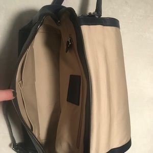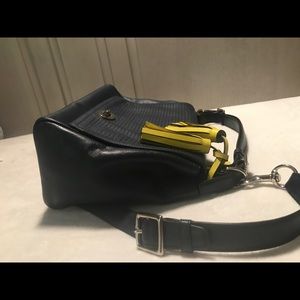 🔥ADD TO BUNDLE AND GET FREE SHIPPING OFFER🔥This Coach perforated leather bag is made with genuine leather in navy and green and includes tassle in light green. Flap is kept secure with silver turnbuckle closure. Carry this bag over the shoulder with the removable, adjustable leather strap or remove it and use the top handle. Back zippered pocket for your cell phone or easy access to your money.