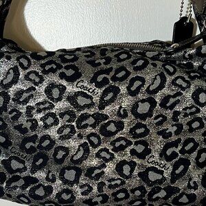 Coach Leopard Ocelot Metallic Hobo Handbag 14302 Black Silver Gray Purse.