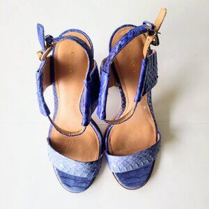COACH 'Lexey' Deep Marine Solid Snakeskin Leather Sandal Block Heels Size 8.5