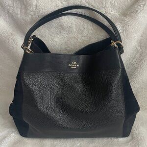 COACH Lexy Mixed Leather Suede Large Shoulder Bag