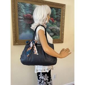 COACH Lexy pearlized navy Pleated Leather Carryall Shoulder Bag F18829