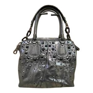 Fun, dark gray Nubuck bag with silver/gunmetal metallic finish.