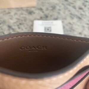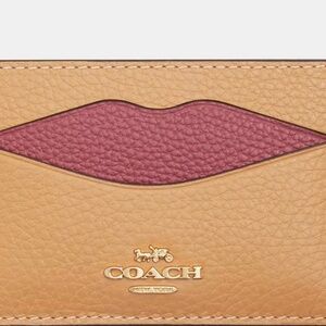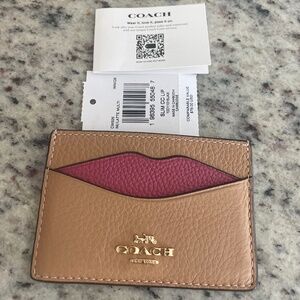 COACH Lip ID Card Tan/Pink Leather Card Case