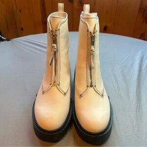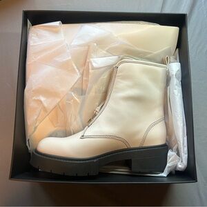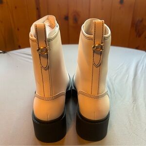 COACH Liza Chunky Ankle Leather Boots Size 8.5 New With Box Color-Chalk White