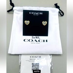 New Coach Logo Crystal Heart Stud Earrings withh Coach Signature Pouch