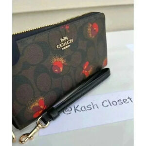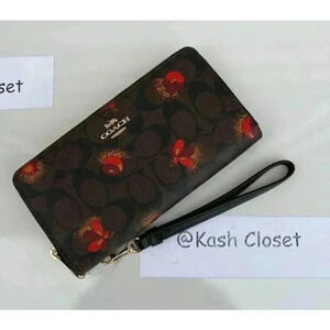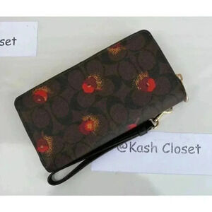 COACH Long Zip Around Wallet In Signature Canvas With Pop Floral Print