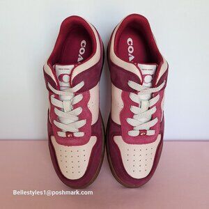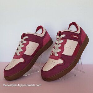 BRAND NEW WITH BOX. Pink color. (Berry Pink/Soft pink/Brown color) A low-top sneaker with lace-up closure. Features a lightweight rubber outsole for comfort. Crafted of Leather and suede upper in a colorblocked design with a COACH logo on the side added detail.