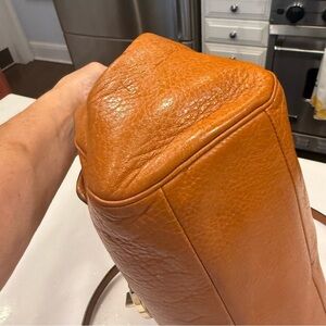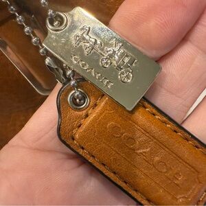 Excellent condition. Women’s Coach Madison East West satchel / crossbody. Brownish / Orange gold hardware, zip & turn lock close front pocket, adjustable & detachable crossbody strap, two hang tags, 1 gold metal with horse & carriage logo, 1 leather “Coach” tag. See photos for measurements.