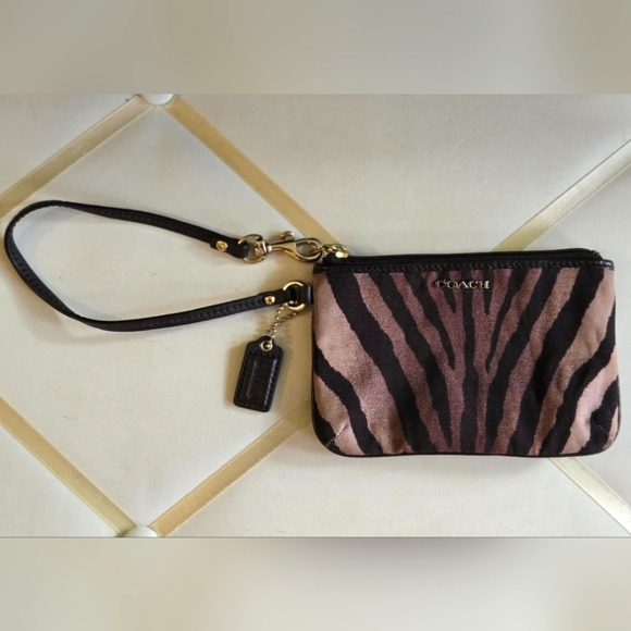 COACH MADISON ZEBRA PRINT SMALL WRISTLET BLACK BROWN CREAM