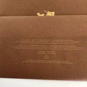 Coach medium size gift paper shopping bag. Heavyweight paper bag. Coach anew York Horse and Carriage logo embossed at front of bag. Back is plain. Rope handles. A few spots here and there, see all photos for close ups as they are part of the description. Measures approximately 7.75” w x 9.75” t x 4.75” d. I have multiples of these in separate listings. Bundle and save. Perfect for small bag or accessories.