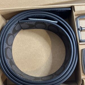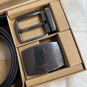 COACH MEN'S BELT SET BOXED HARNESS PLAQUE REVERSIBLE BELT BLACK NWT
