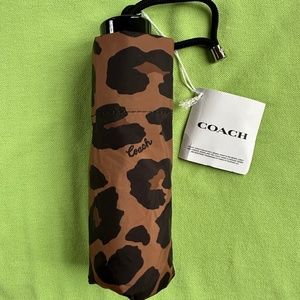 ADD A LITTLE STYLE AND SHOW A LITTLE OF YOUR WILD SIDE WITH THIS FABULOUS, AUTHENTIC COACH UV PROTECTION MINI UMBRELLA! FEATURED IN A FUN "LEOPARD PRINT"! *Please Note: Pattern placement may vary as I have more than one umbrella available. That applies to the covers, too, and some may not have the Coach script part of the pattern on the cover. BRAND NEW -- NEVER USED! -printed nylon -attached wrist strap -carry rain or shine -99% UV protection -style: CC947 Stored in a smoke-free, pet-free home.