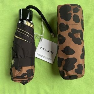 COACH MINI UMBRELLA UV PROTECTION LEOPARD PRINT:NWT LEOPARD CC947