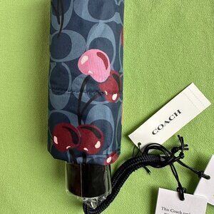 COACH MINI UMBRELLA UV PROTECTION SIGNATURE CHERRY PRINT:NWT DENIM/MULTI CZ929
