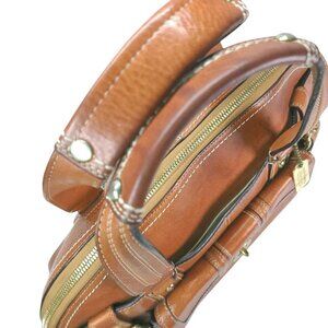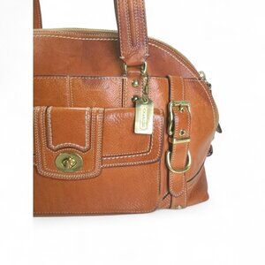 This Y2K Coach 11085 Miranda Vintage Leather Satchel from 2007 is truly a standout! Crafted from full-grain vintage leather in a beautiful Natural shade and accented with gold hardware, this spacious satchel combines elegance with practicality, featuring multiple internal and external pockets for easy storage. Weighing just over 3 pounds, this substantial bag boasts rich, luxurious leather.