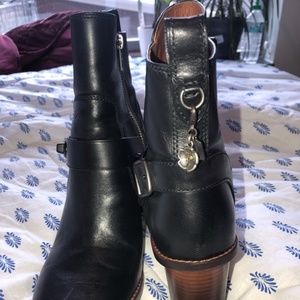 Gorgeous moto heeled booties by Coach. Only worn a couple times. Perfect for girls night, date night, or when you want to be comfy and look cute!