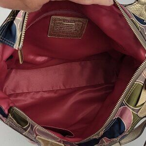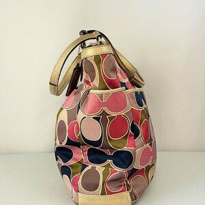 COACH MULTICOLOR OP ART SCARF TOTE SHOULDER BAG