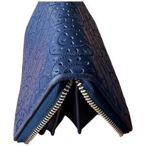 COACH Madison Blue Laser Cut Leather Accordion Zip-Around Wallet