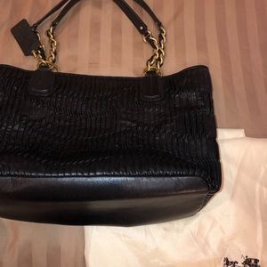 Gently Used COACH Black gathered leather with gold hardware tote.
