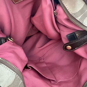 This COACH Madison Julianne Op Art Signature Tote Large Satchel Shoulder Bag 12963 is a stylish accessory for any occasion. With a multicolor exterior made of leather, this bag features a zipper closure, adjustable strap, and gold hardware. The bag is adorned with a bag charm and has a satin and cotton lining in brown.