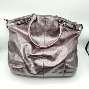 Spacious, with a zippered pocket hidden in the front pleat. Leather Inside zip, cell phone and multifunction pockets. Zip-top closure.