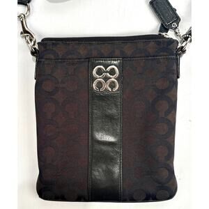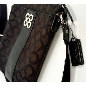 Coach Crossbody Bag Black Brown Signature C Print Adjustable Strap