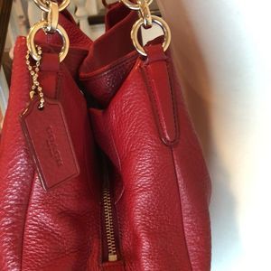 COACH Fire Engine Red Tumbled Red Leather Shoulder Bag