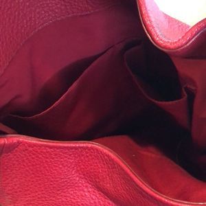 COACH Deep Red Leather Triple Pocket Full Zipper Magnetic Close Hobo Shoulder Bag With Red Cotton Lining