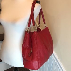 COACH Madison Phoebe Tumbled Red Leather Red Lining 3 Section Shoulder Bag