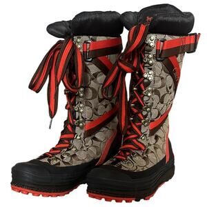 COACH Marian Classic Lace Up Sporty Print Chic Water Resistant Snow Boots 7 Black, Red, Orange, Tan, Khaki, Brown,