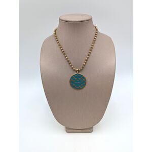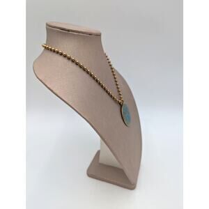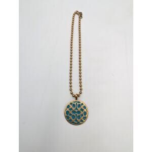 COACH Matte Gold and Blue Logo Pendant Necklace