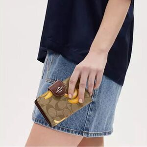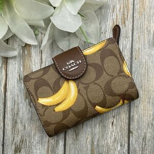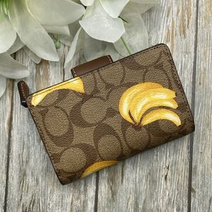 COACH Medium Corner Zip Wallet In Signature Canvas With Banana Print Bag Purse