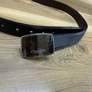COACH Mens Belt Reversible Plaque Black Brown Leather 34