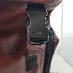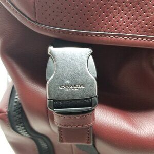 COACH Men's Burgundy Red & Black Leather Metal Buckle Drawstring Laptop Backpack