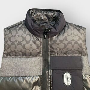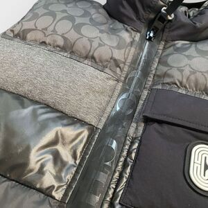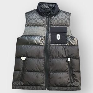 COACH Mens Down Puffer Black Gray Logo Vest size XS New with Tags